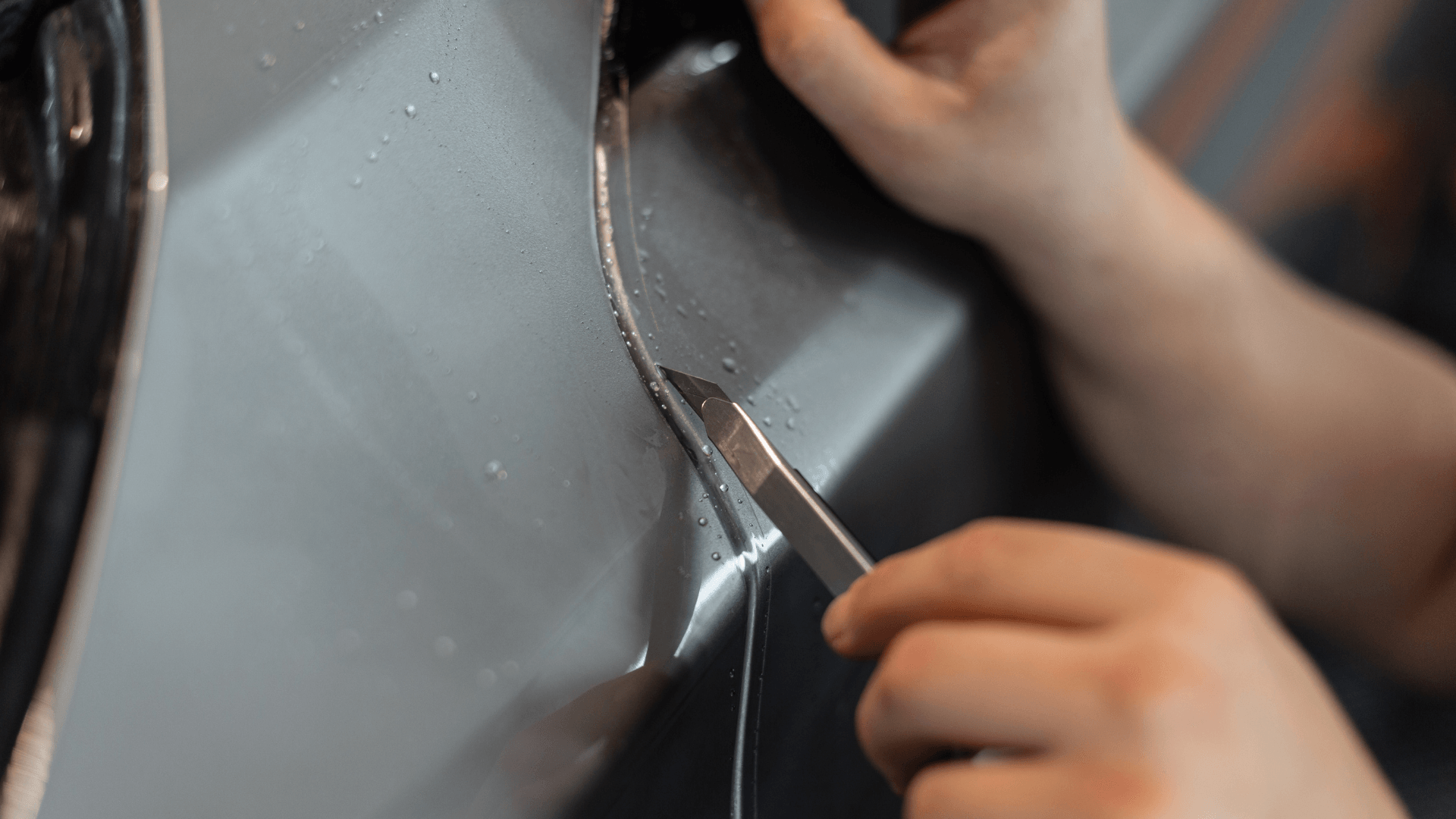 El Paint Protection Film (PPF) es una lámina de poliuretano termoplástico prácticamente invisible que se adhiere directamente sobre la pintura de tu vehículo, actuando como un escudo permanente contra el mundo exterior.